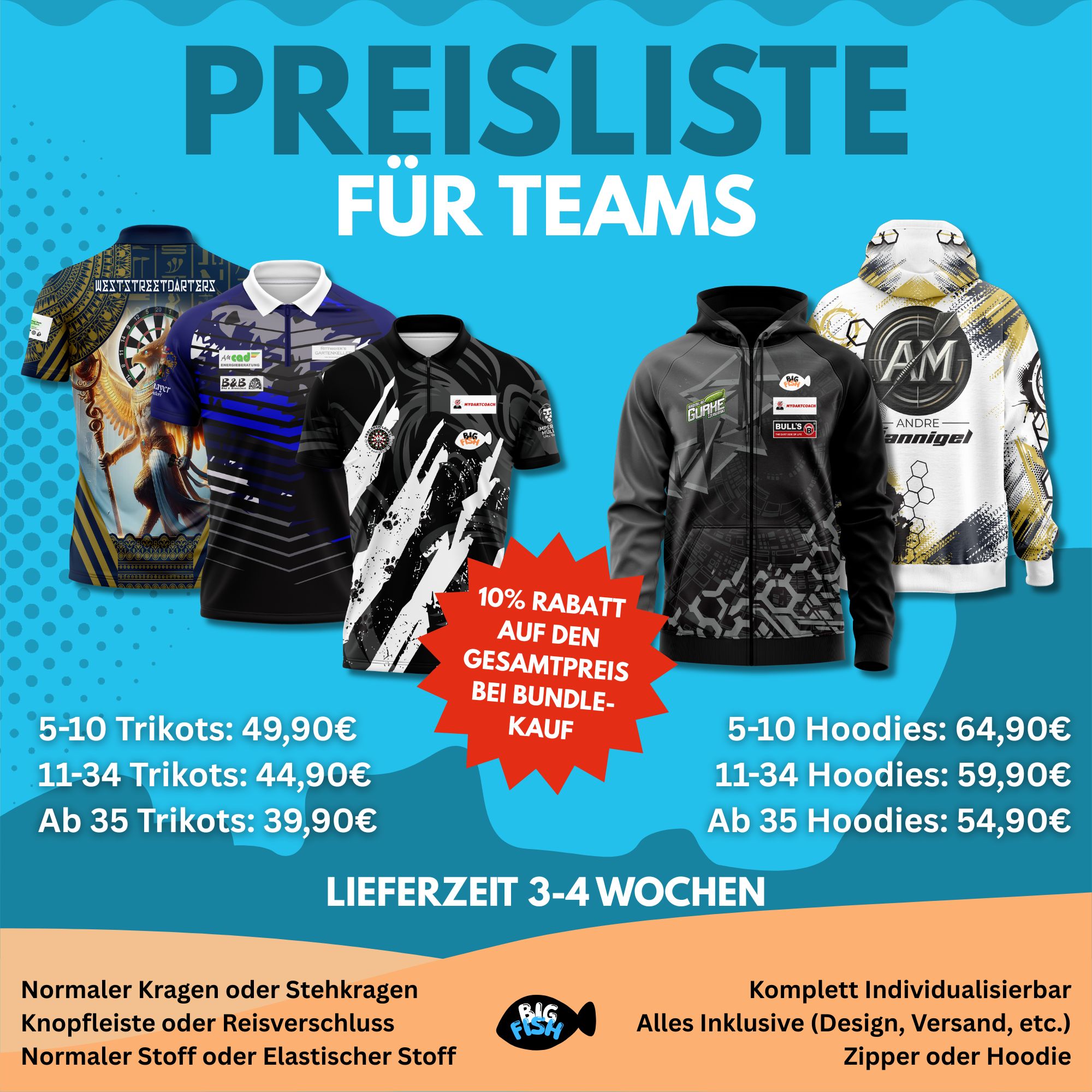Du bist auf der Suche nach einem ganzen Satz Trikots für deinen Verein? Dann findest du hier unsere Angebote für Teams & Vereine.